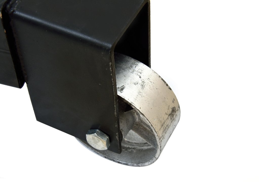 Snadné manévrování díky 4 bytelným kovovým kolečkům – dvě jsou uloženy v otočných konzolích, dvě na pevné ose.
