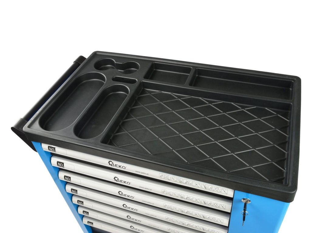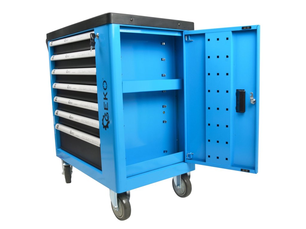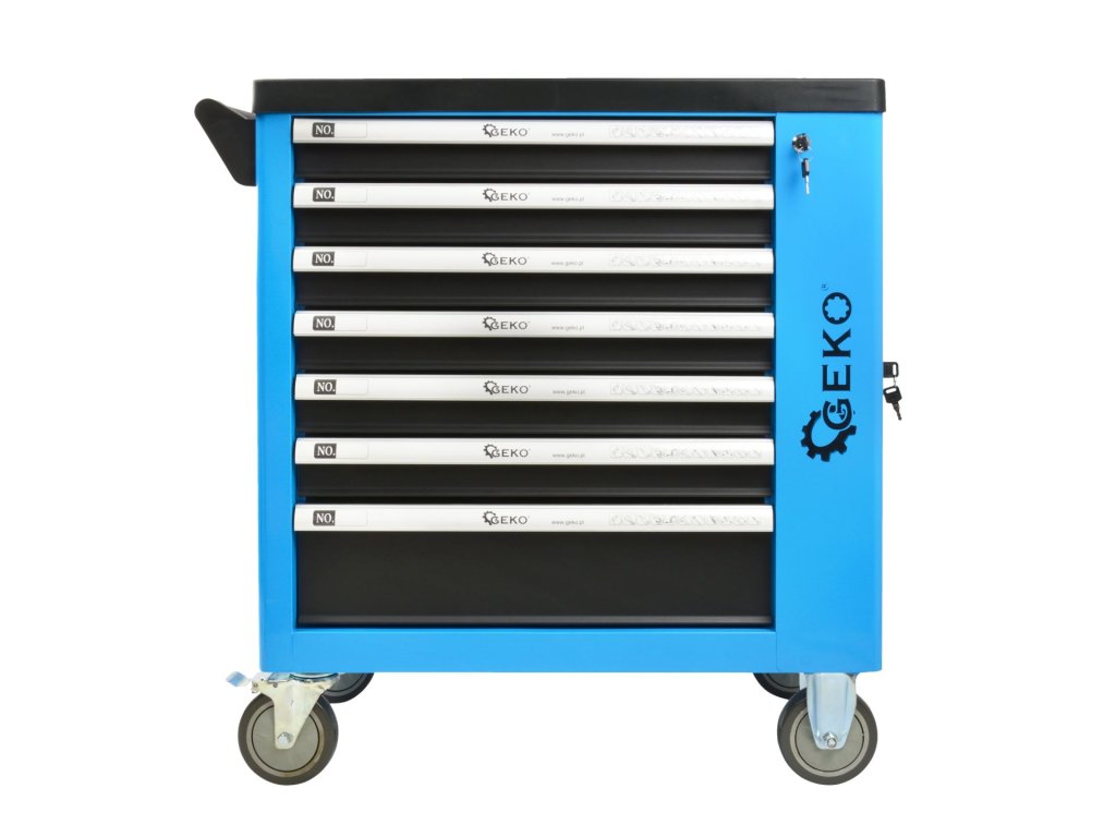 Dílenský montážní vozík vybavený, 243 ks nářadí, 7 zásuvek a skříňka - GEKO G10833