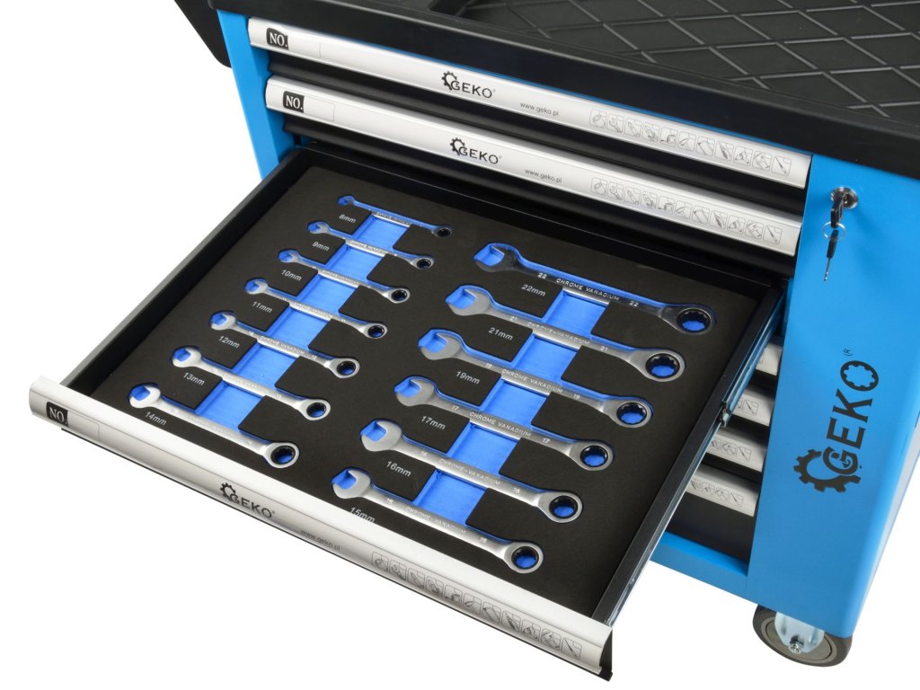 Značka GEKO je mezi profesionály i hobby uživateli známá jako výrobce vybavení pro autoservisy, dílny i ručního nářadí. S typickým logem ozubeného kolečka tak můžete zakoupit například stahováky, elektrické nářadí (leštičky, brusky, AKU nářadí atd.), gola sady a mnoho dalšího. Doslova lze říci, že rozsah nabízeného zboží se pohybuje od samostatných nástrčných hlavic po vybavené dílenské vozíky.