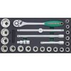 · 18× nástrčná hlavice 1/2” 6hranná, rozměry: 10 – 11 – 12 – 13 – 14 – 15 – 16 – 17 – 18 – 19 – 21 – 22 – 23 – 24 – 27 – 30 – 32 – 36 mm (řada S04H3)
