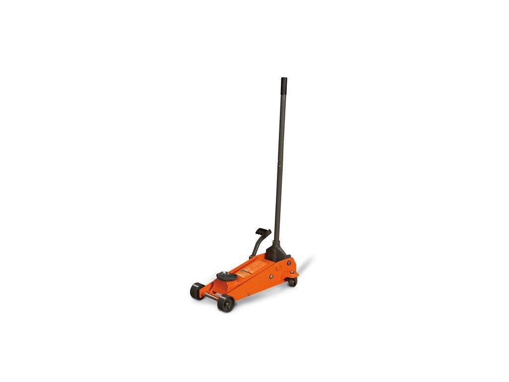 Nízkoprofilový pojízdný dílenský zvedák, ovládaný tyčí a nožním pedálem.