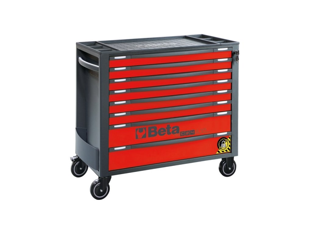 Dílenský vozík, dlouhý, 8 zásuvek, systém proti převrácení, červený - Beta Tools