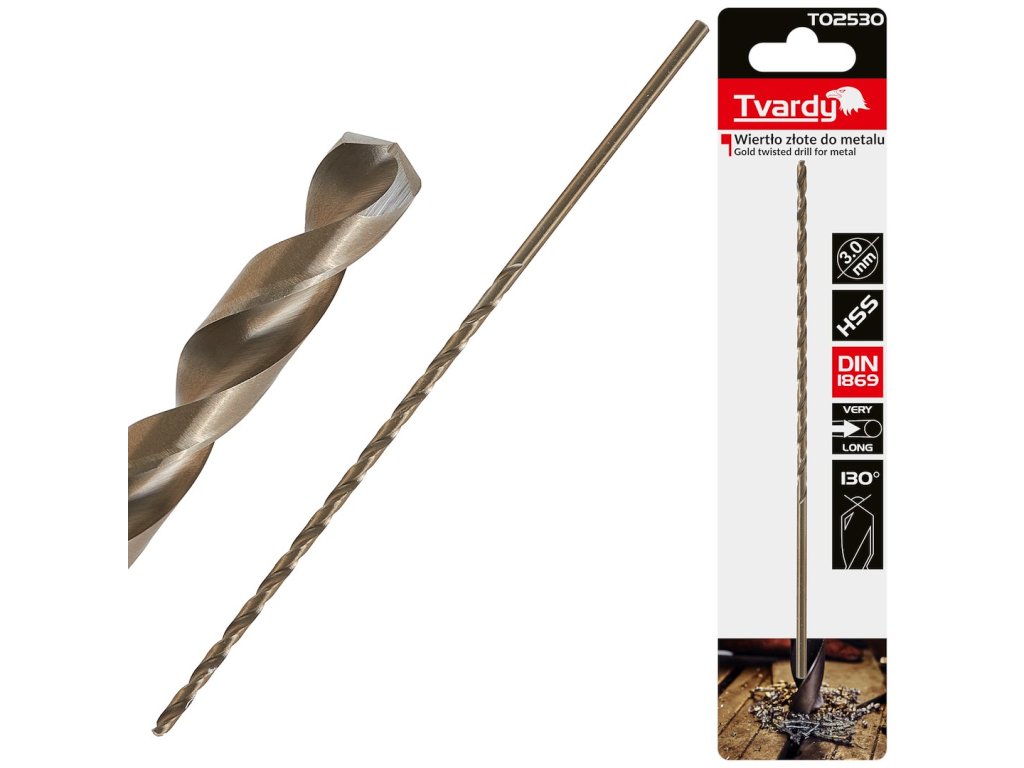 Dlouhý HSS DIN1869 3,0 x 150 mm zlatý kovový spirálový vrták