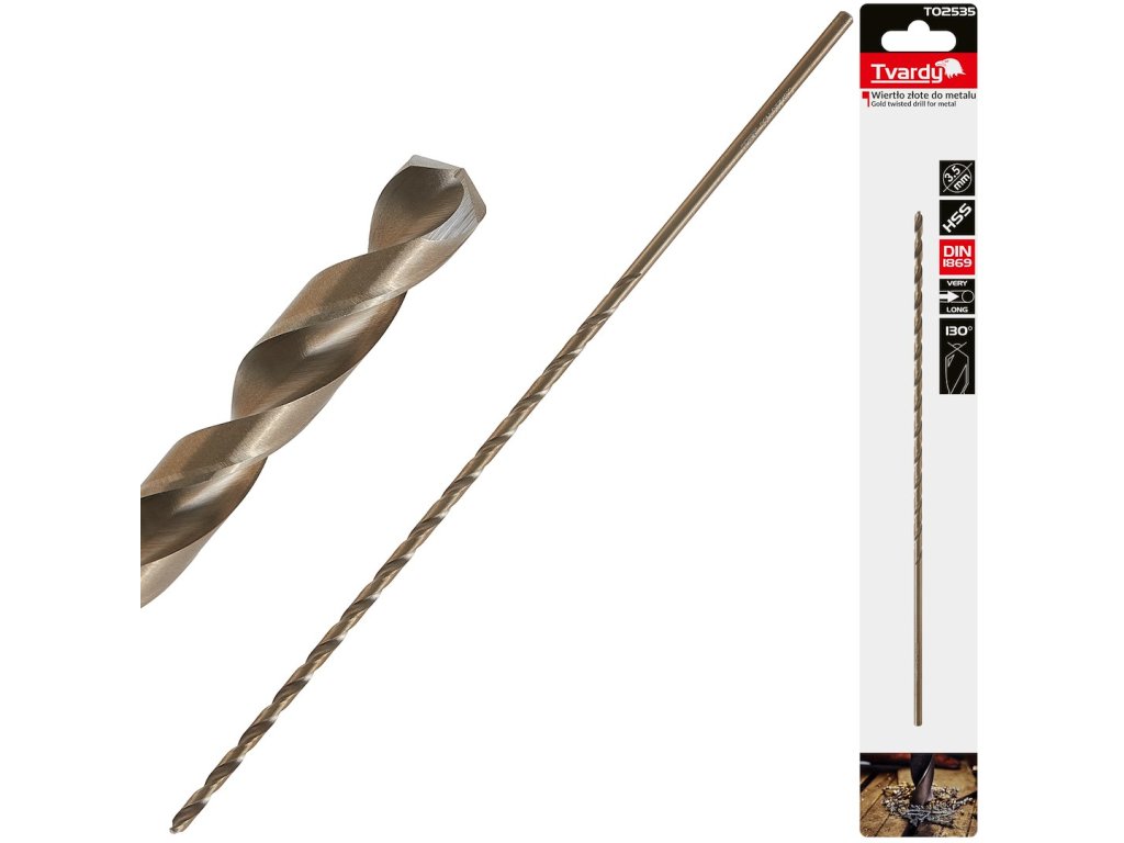 Dlouhý HSS DIN1869 3,5 x 210 mm zlatý kovový spirálový vrták