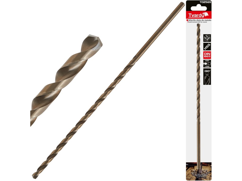 Dlouhý HSS DIN1869 6,5 x 275 mm zlatý kovový spirálový vrták