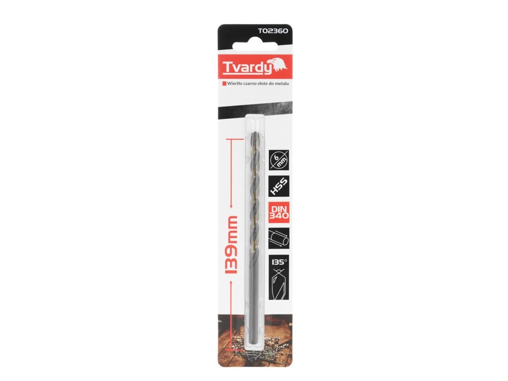 Dlouhý HSS M2 6,0 mm černý a zlatý kovový spirálový vrták