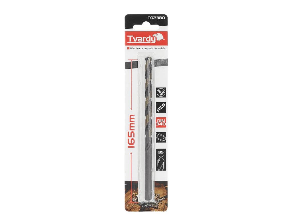 Dlouhý HSS M2 8,0 mm černý a zlatý kovový spirálový vrták