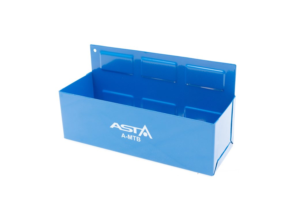 Magnetická přihrádka na spreje, šroubováky a drobné nářadí, 210 × 75 × 70 mm, s otvory ve dně, nosnost cca 3 kg – ASTA A-MTB