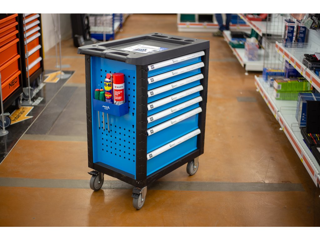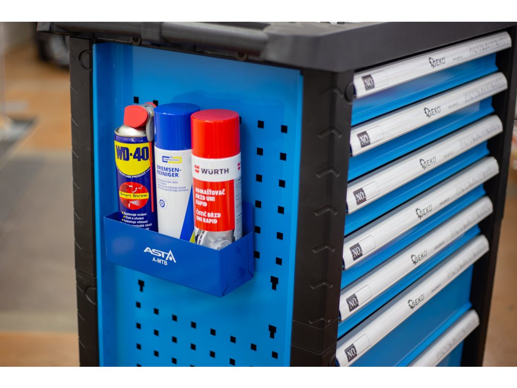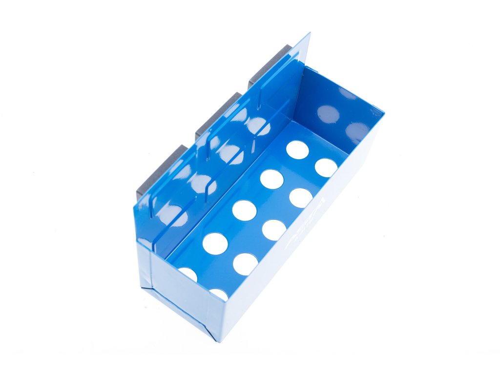 Určeno ke skladování nářadí, sprejů, plechovek, lahví drobného nářadí a dalších předmětů na pracovišti. Možno přichytit například na bok dílenského vozíku a zvýšit tak jeho úložnou kapacitu.
