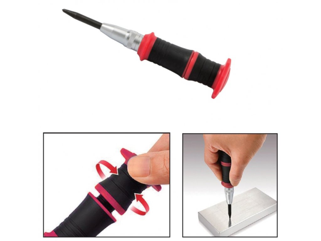 Speciální nástroj pro děrování otvorů do různých materiálů. Síla úderu se nastavuje otáčením rukojeti, aby se přizpůsobila různým materiálům. Nástroj lze obsluhovat i jednou rukou, není nutné do něj udeřit kladivem jako do klasického důlčíku – úderová síla se vytvoří pomocí pružinového mechanismu uvnitř.