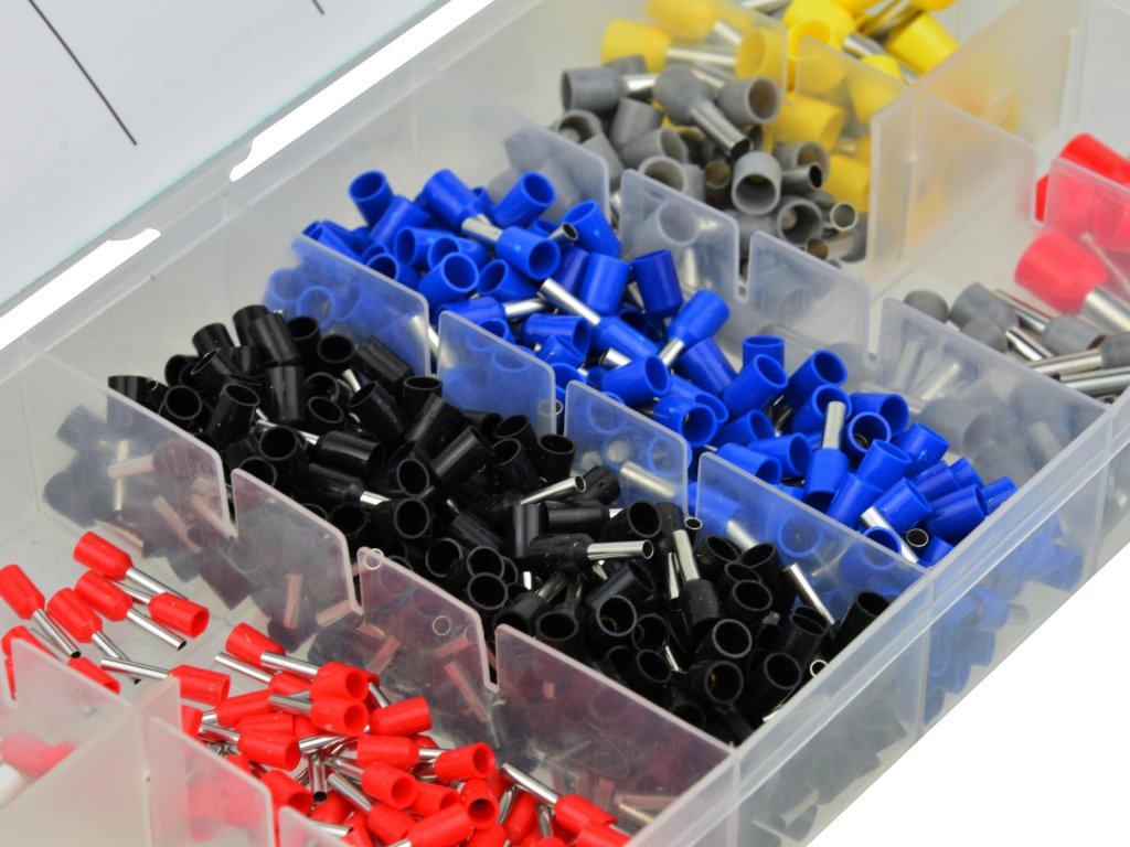 Krimpovací dutinové konektory (tzv. dutinky) pro elektroinstalace, měděné, 8 různých průřezů, sada 685 kusů v plastové krabičce – GEKO G02815