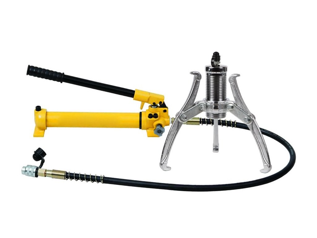Dvou- a tříramenný hydraulický stahovák ložisek, řemenic, ozubených kol apod. se stahovací sílou 20 t má oboustranně použitelná ramena a oddělenou ruční hydraulickou pumpu.