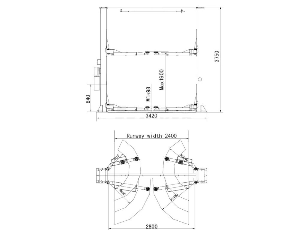 Kvalitní autozvedák s asymetricky tvarovanými rameny určený pro osobní a lehčí užitkové automobily. Vvyniká osvědčenou konstrukcí, spolehlivou hydraulikou a tichým chodem.