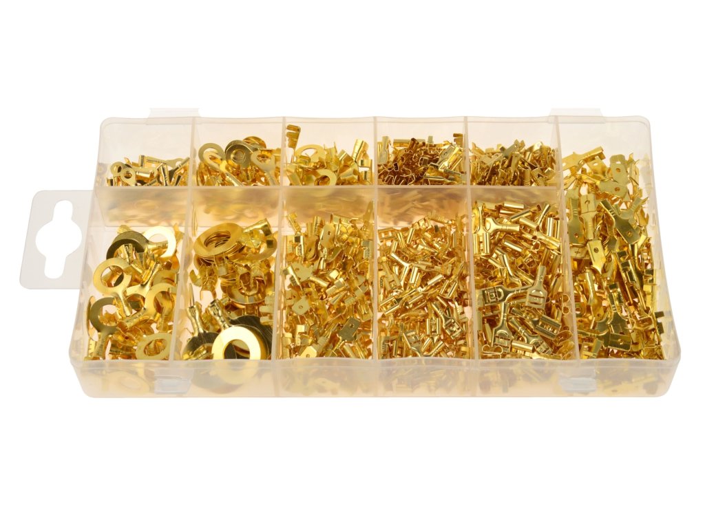 Velká sada elektrických automobilových krimpovacích-lisovacích konektorů – spojů, neizolovaných, 750 ks v plastové krabičce – GEKO G02828.
