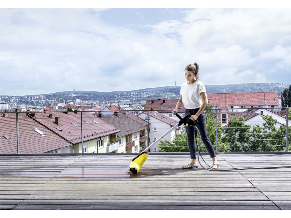 Elektrický čistič teras PCL 4 rovnoměrně vyčistí vaši terasu i balkón. Poradí si s povrchy ze dřeva i WPC (plastová terasová prkna) a přikoupit lze také kartáče na podlahy z kamene.