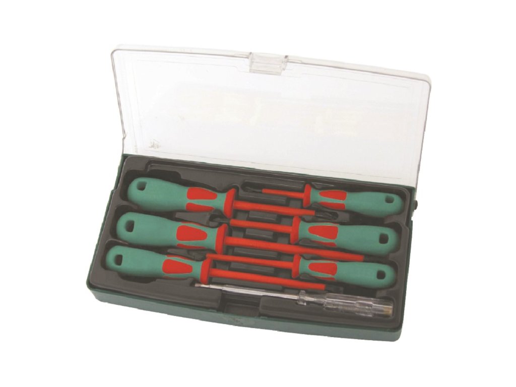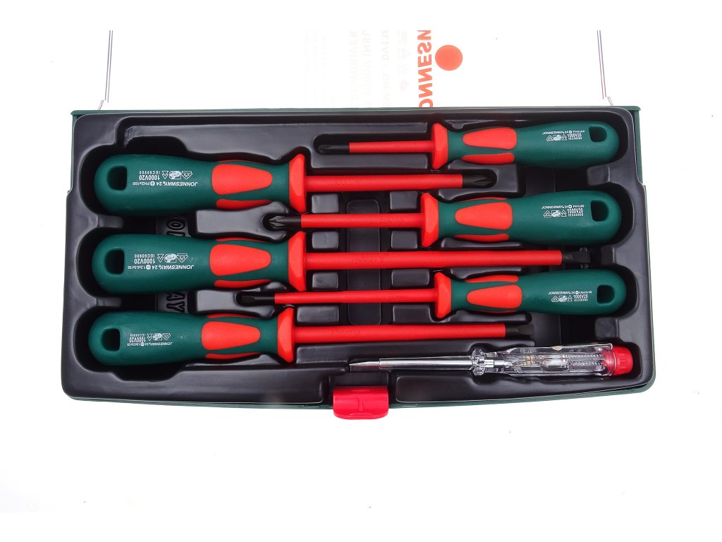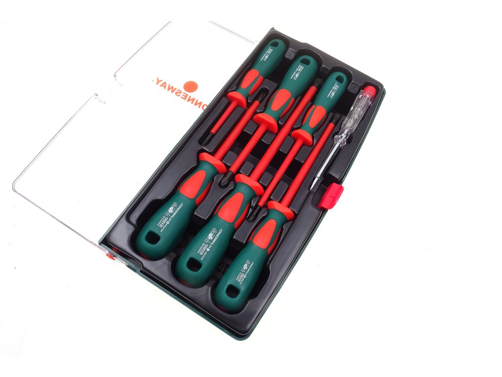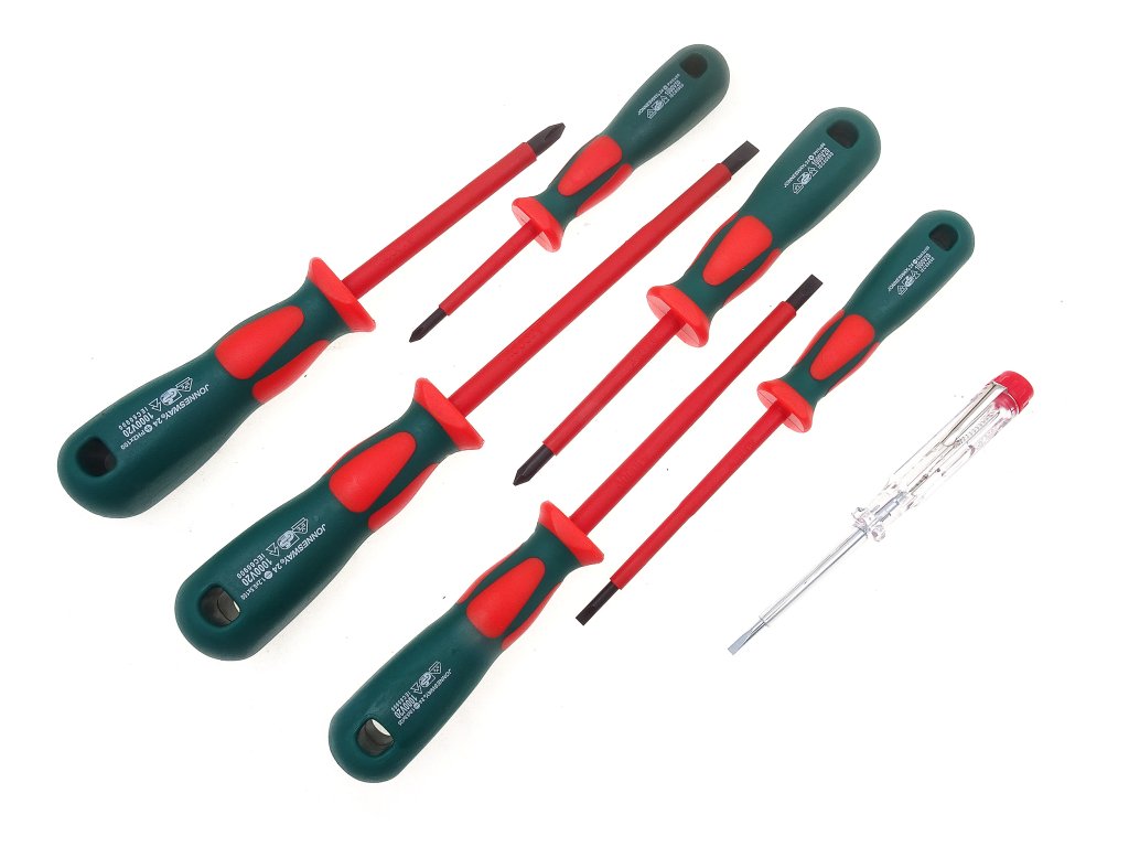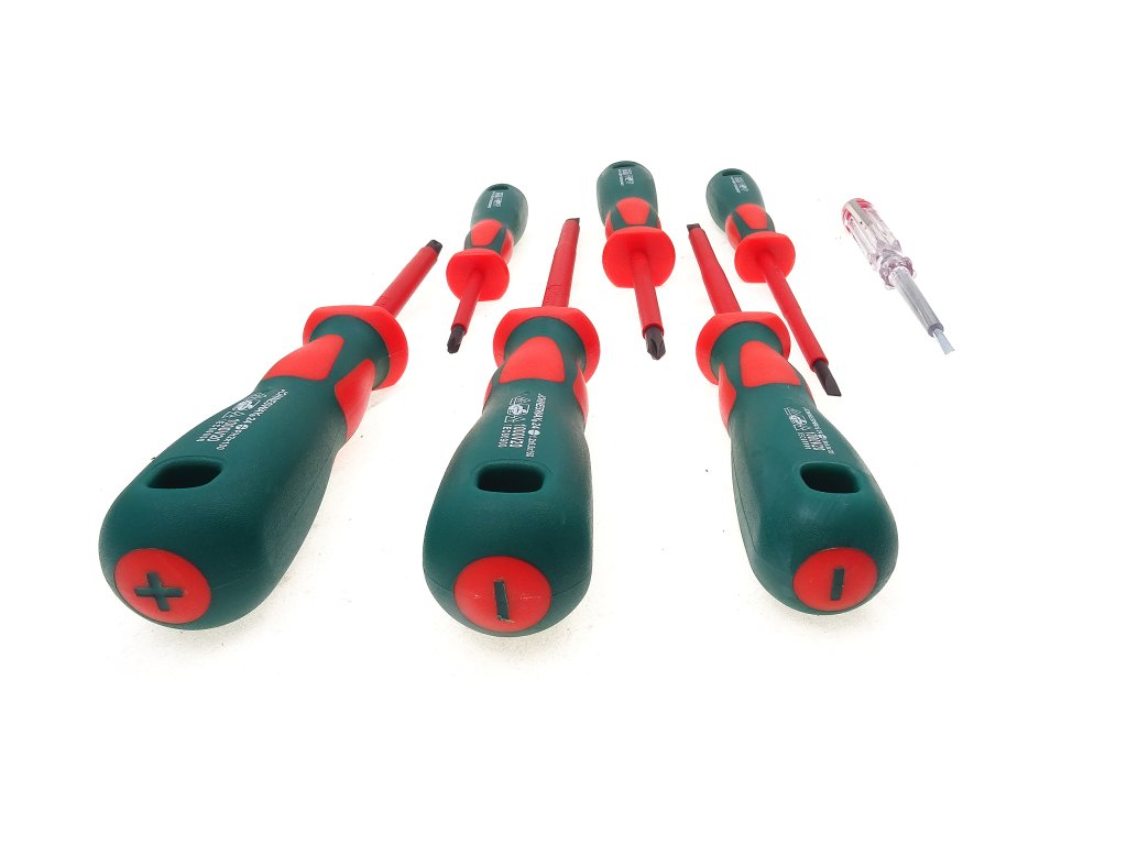Souprava 7 kusů šroubováků pro elektromontéry. Určeno pro práci pod napětím do 1000 V. Šroubováky splňují normu IEC 60900, izolace splňuje normu VDE.