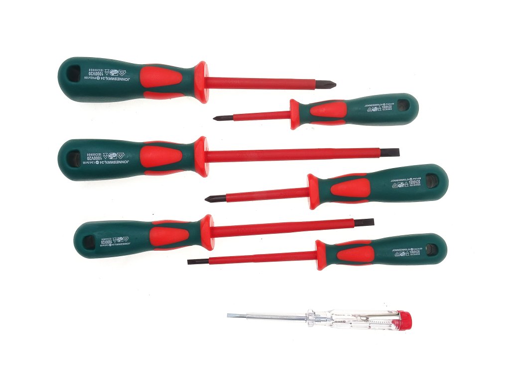 Izolované elektrikářské šroubováky, ploché (4-6,5 mm) a křížové (PH0-PH2), se zkoušečkou – JONNESWAY DV13PP07S