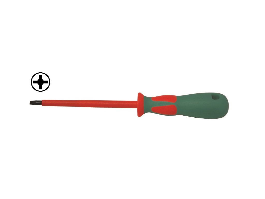 Speciální nářadí pro opravy a údržby elektroinstalací. Vybaveno silnou izolační vrstvou na rukojeti, dřík má gumový potah.