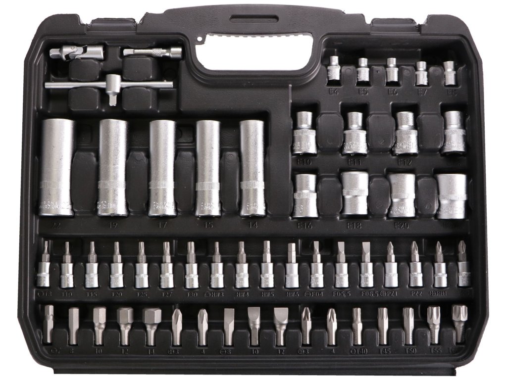 Kompletní gola sada se 108 díly hlavic a bitů s ráčnami v odolném plastovém kufru. Tato gola sada si najde místo v každé dílně nebo garáži. Obsahuje celou škálu nástrčných hlavic, zástrčných klíčů, bitů, dvě ráčny, univerzální šroubovací rukojeť a další.