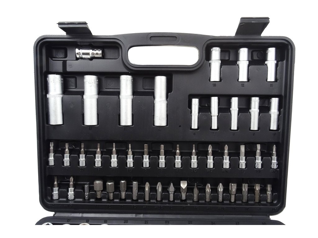 Vyrobeno z chrom-vanadové oceli. Hobby vybavení; sada není vhodná pro rázové utahováky. Gola sada je dodávána v praktickém kufru z tvrdého plastu.