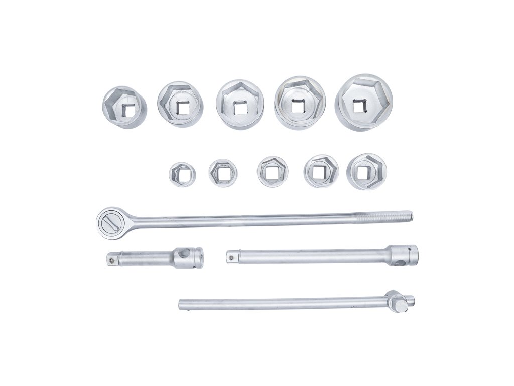 Metrická gola sada s vodicím 4hranem 1“, 6hranné hlavice „ořechy“, sada 15 dílů v plechovém kufru - BGS do it yourself 15111