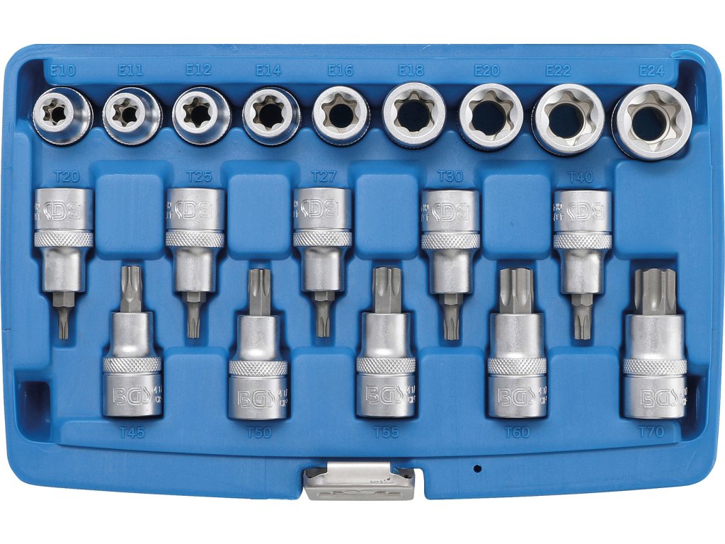 Hlavice 1/2” TORX vel. T30-T70 a E-TORX vel. E10-E24, sada 19 ks - BGS 5100
