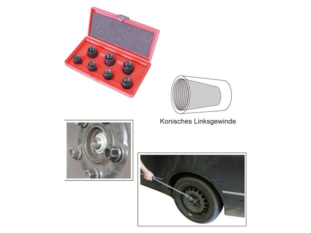 Vhodný na šrouby kol/matice SW 17 - 26 na odstranění bezpečnostních šroubů a matic bez původního speciálního klíče a odšroubování šroubů nebo matic jejichž šestihran je poškozený.