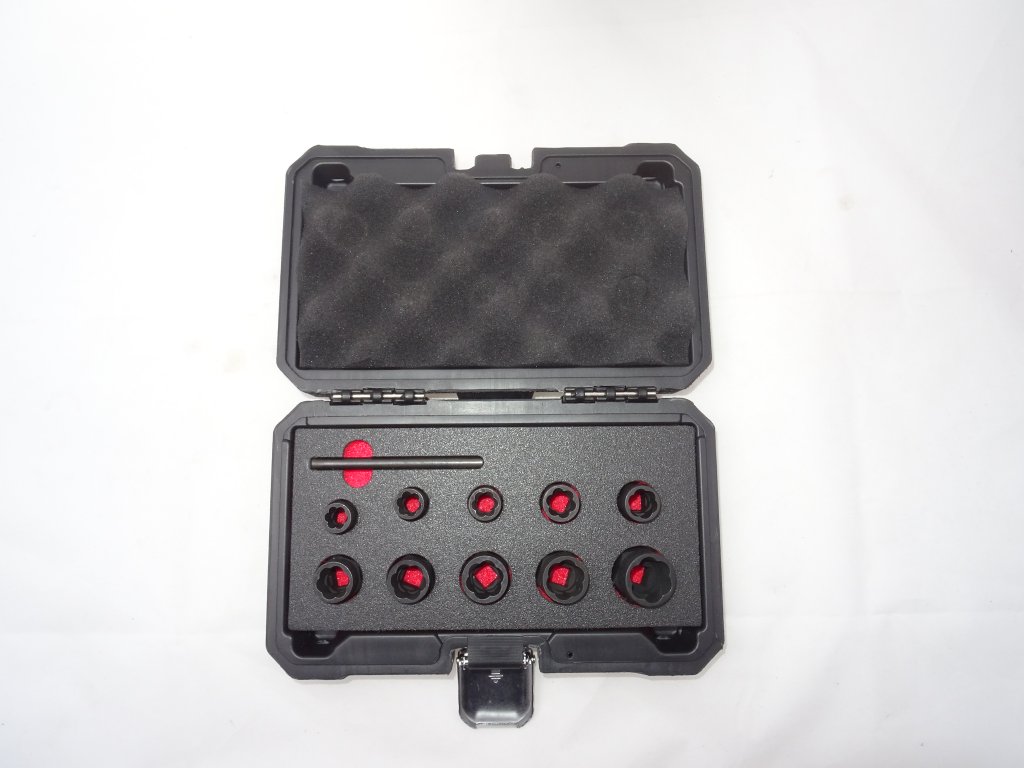 Nástrčné hlavice (tzv. ořechy) na povolení poškozených (stržených, „ožvýkaných“) šroubů a matic, vodicí 4hran 3/8“, sada 10 dílů v plastovém pouzdře – QUATROS QS50928