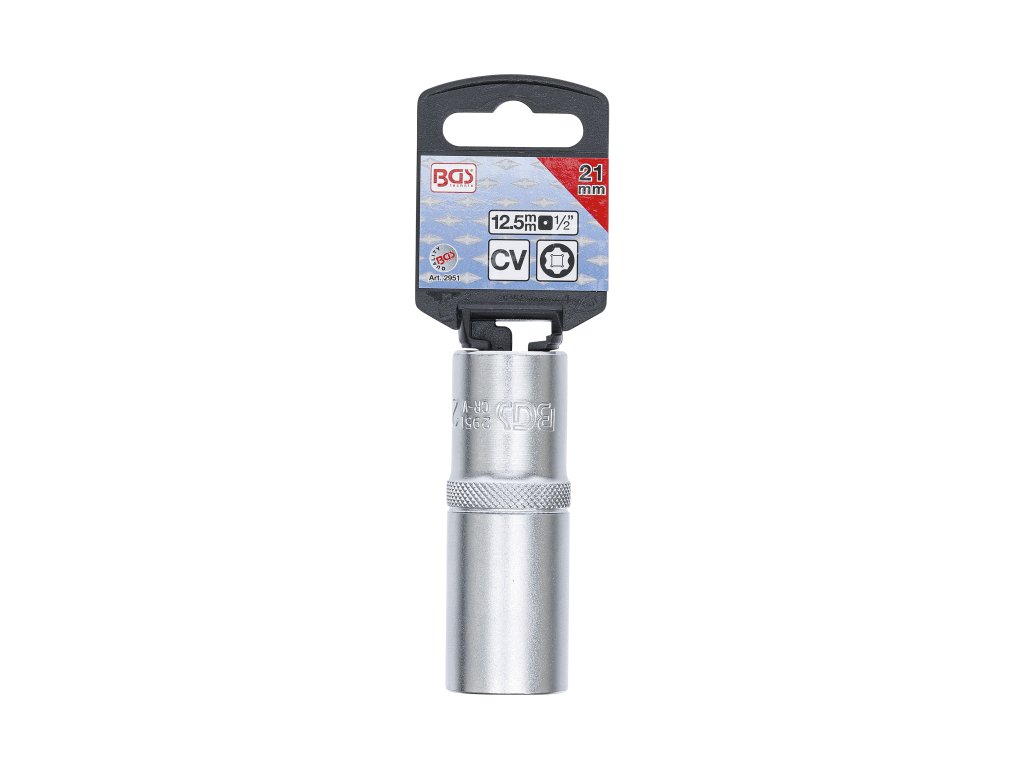 Nástrčná hlavice (ořech) v rozměru 21 mm, pro vodící čtyřhran o velikosti 1/2", prodloužená, Super Lock (zvlněný profil) – BGS technic 2951.