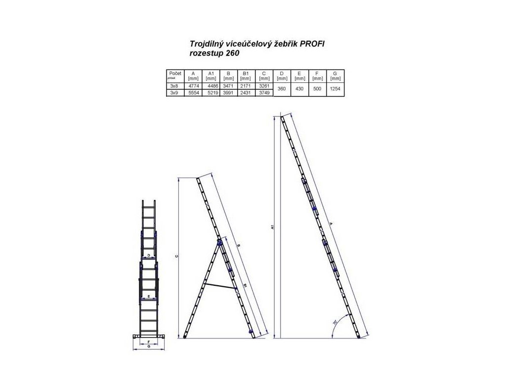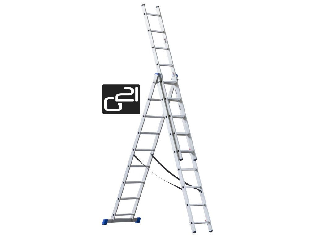 Univerzální žebřík pro dílny, domácnosti, průmysl, stavby, zahrady a mnohá další místa. Lze využít jako štafle, štafle s vysunutým třetím dílem nebo žebřík při vysunutí dvou dílů. Odnímatelný třetí díl lze použít jako jednoduchý žebřík.