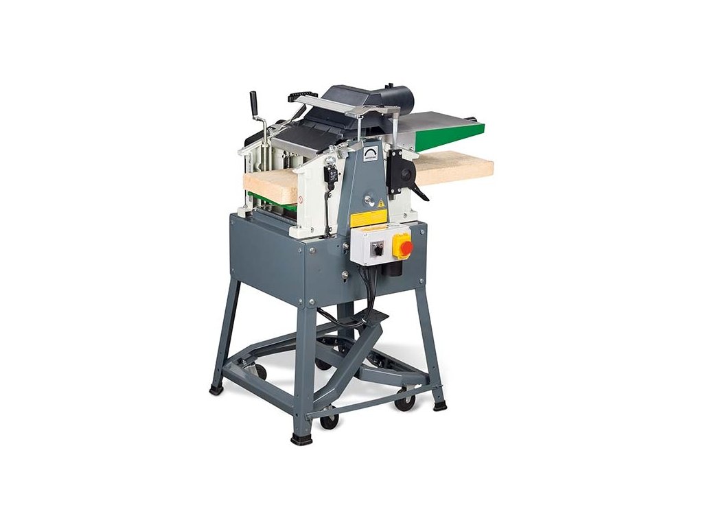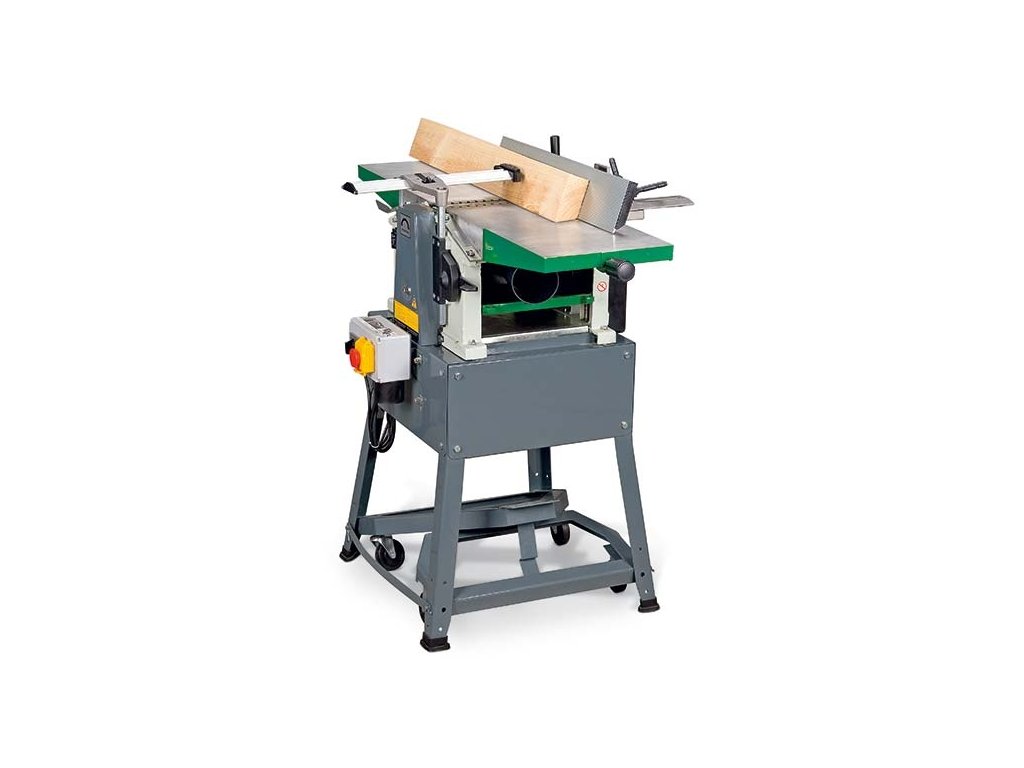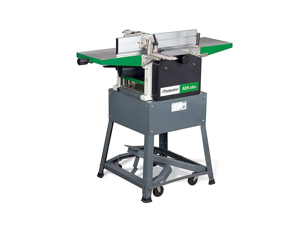 Praktický stroj s hoblovací šířkou 260 mm a podstavcem s možností pojezdu.