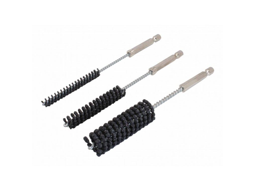 Sada samostředicích vnitřních kartáčů zakončených flexibilními kuličkami z karbidu křemíku pro čištění hran, povrchovou úpravu a honování válců.