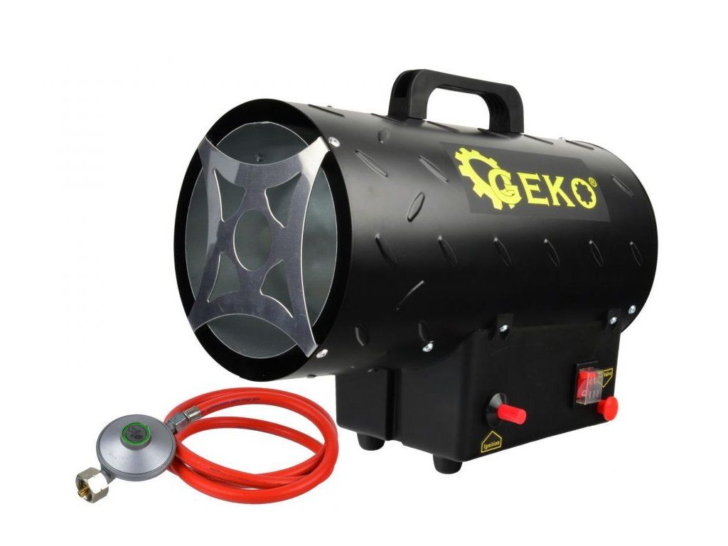 Plynový ohřívač je zařízení s jednoduchou konstrukcí, vyznačující se vysokou účinností. Je vybaven vestavěným piezoelektrickým zapalováním a přehřívacím zařízením, které přeruší přívod plynu, což zaručuje bezpečný provoz. Ohřívač lze připojit k 5 nebo 11 kg propan/butanové láhvi. Plynový ohřívač se skvěle hodí pro vytápění dílen, hal, skladů apod. Ke standardní výbavě ohřívače patří regulátor tlaku a gumová hadice o délce 1550 mm.