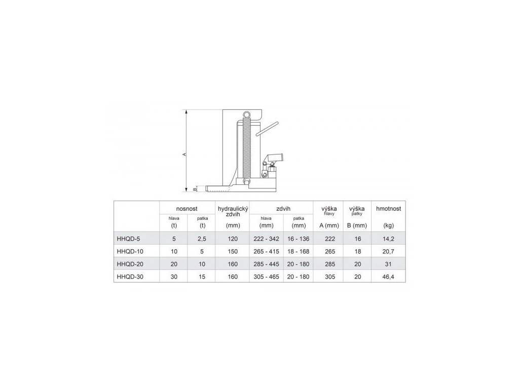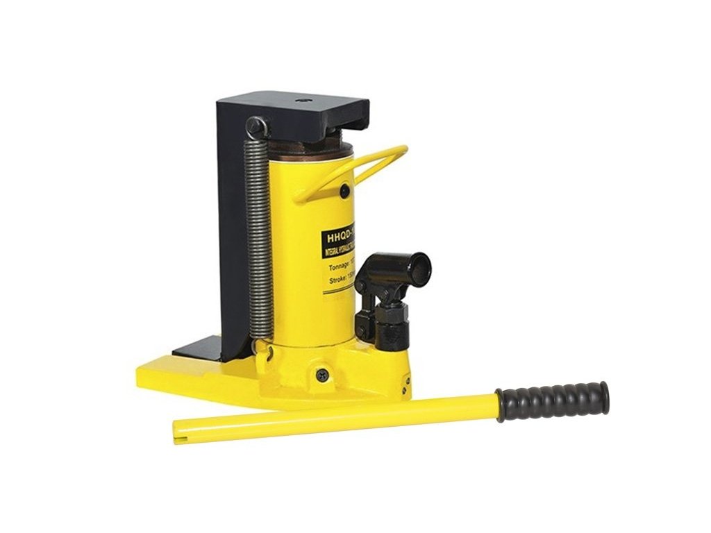 Hydraulický zvedák s možností zvedání hlavou nebo patkou, s ručním zdvihem pomocí páky, nosnost 10/5 tun, pro zvedání těžkých strojů, kontejnerů, vysokozdvižných vozíků apod. – Genborx HHQD-10