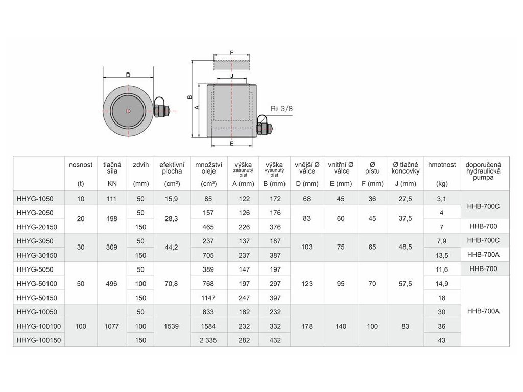 - jako zdroj tlaku se doporučuje ruční hydraulická pumpa HHB-700A (z naší nabídky) nebo obdobná hydraulická pumpa
