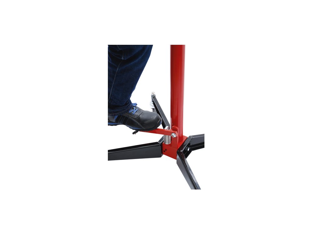 Břemeno se zvedá nožním pedálem, takže ruce obsluhujícího mechanika zůstávají volné. Spouštění se provádí povolením ventilu v horní části zvedáku.