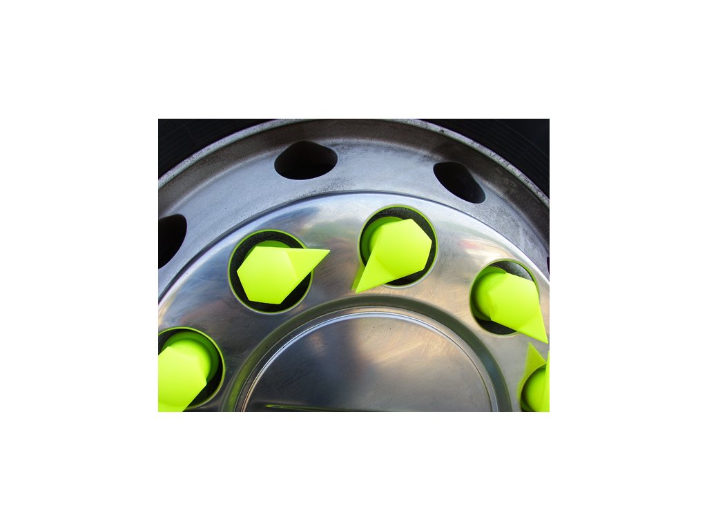 Vhodné pro přední i zadní nápravy. Indikátor se snadno nasazuje, přitom velmi dobře drží a nehrozí jeho ztráta. Tento typ navíc funguje jako ochranná krytka – zamezuje vzniku koroze a oxidace závitu na šteftu. Reflexní ostře žlutá barva pomáhá při orientaci.