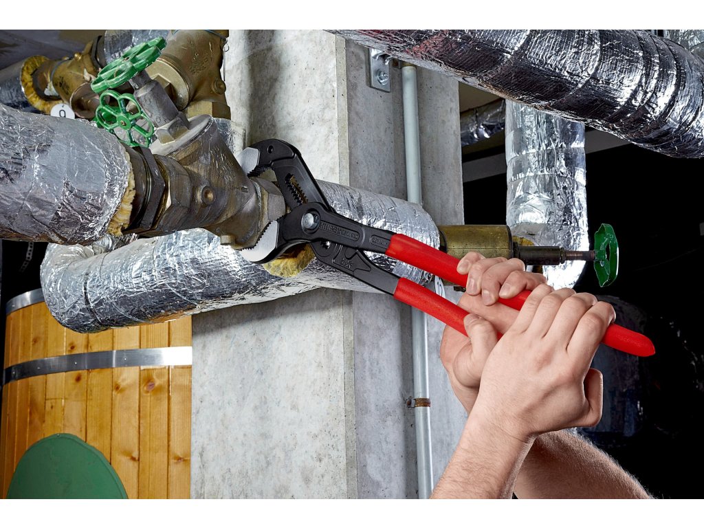 Výhody práce s těmito kleštěmi na vodní čerpadla jsou zřejmé: lze je rychle umístit na součást a jsou samosvorné, např. na trubky a matice. Díky rukojetím potaženým plastem sedí kleště Knipex Cobra 87 01 560 pevně a pohodlně v ruce.