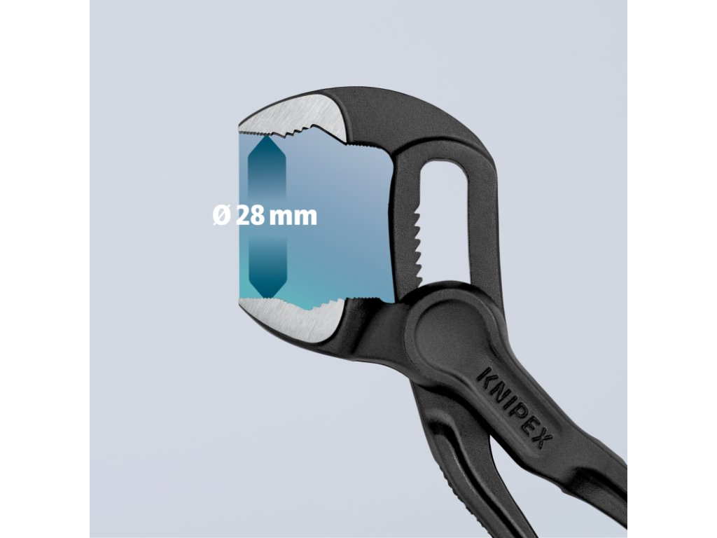 Instalatérské SIKO kleště, rozsah 28 mm, délka 125 mm, s tlačítkem a 11 nastavitelnými pozicemi – KNIPEX Cobra 87 01 125