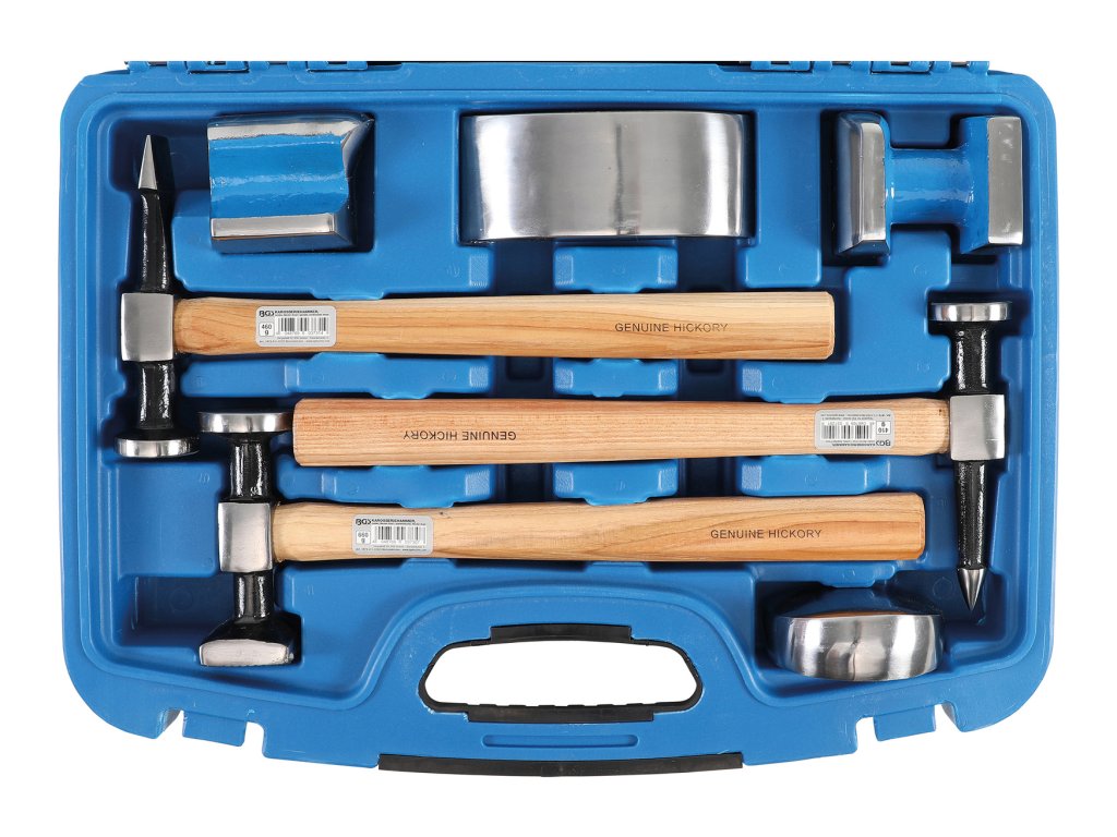 Autokarosářská sada kladiv a „babek“, souprava 7 ks nářadí v plastovém kufru, univerzální – BGS 1672