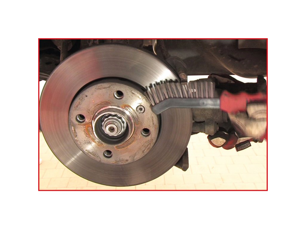 Ocelový kartáč určený pro čištění a údržbu brzdových třmenů, kotoučů a dalších prvků.