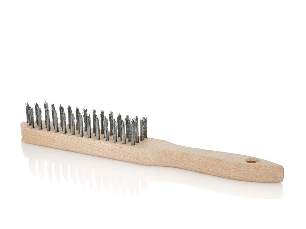 Kartáč ocelový, 4 řady, dřevěný
