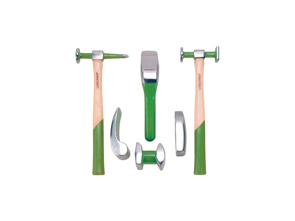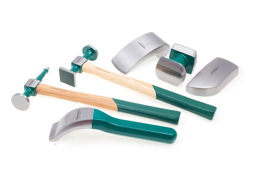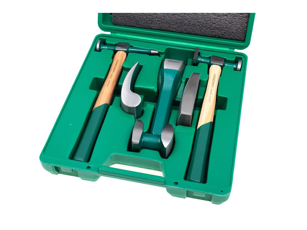 Sada klempířského nářadí pro karosáře: kladiva a vyrovnávací špalky, 6 ks v plastovém kufru – JONNESWAY AG010030A