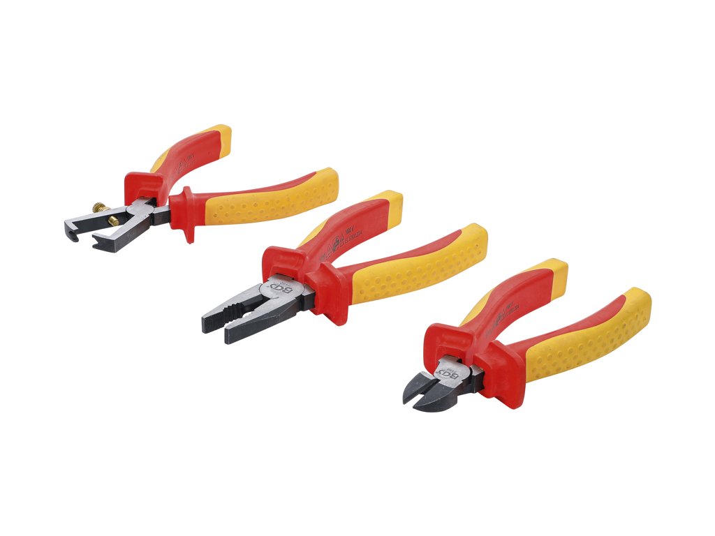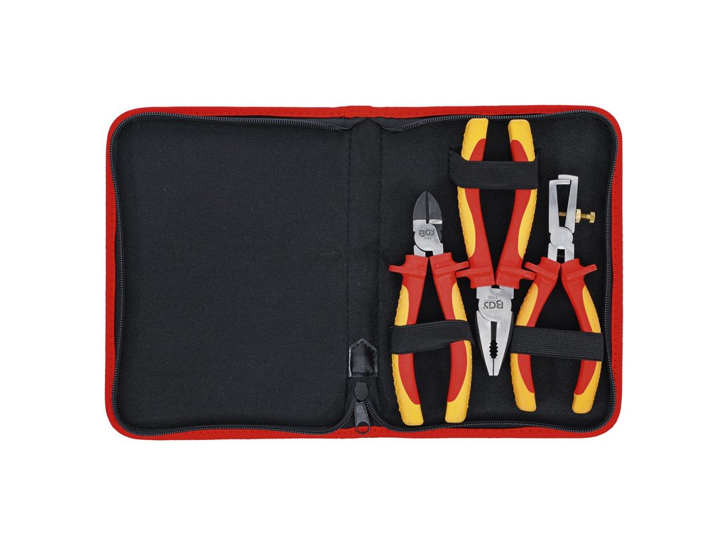 Elektrikářské kleště s izolací VDE, štípací, kombinační a na odizolování, sada 3 dílů v pouzdře - BGS technic 7158