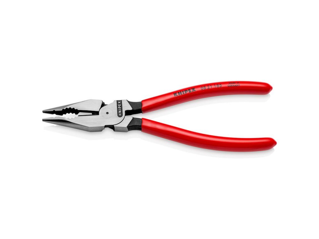 Úzké kombinované kleště 185 mm, černěné, s plastovým potahem – Knipex 08 21 185