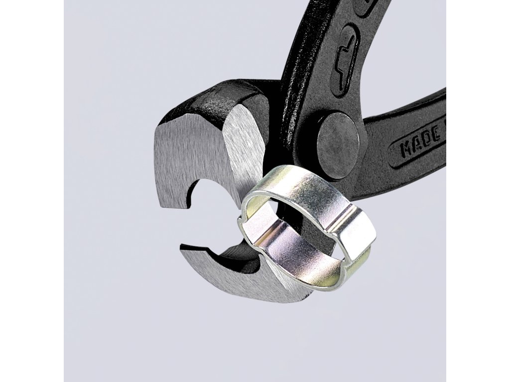 Kleště lze díky bočním secvakávacím čelistem použít i „z boku“, díky čemuž je mimořádně snadná instalace spon ve špatně přístupných místech.
