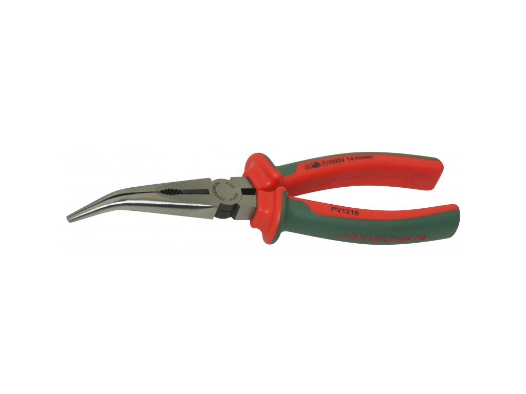 Elektrikářské kleště na jemnou mechaniku („telefonní kleště“) VDE, zahnuté čelisti, délka 20 cm, izolované do 1000 V – JONNESWAY PV1216