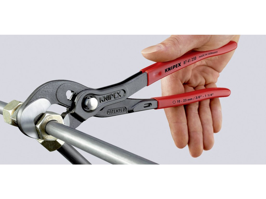 „Univerzální klíč“ – kleště se speciálním tvarem pro šestihranné matice a šrouby velikosti 10 až 32 mm – KNIPEX Raptor 87 41 250