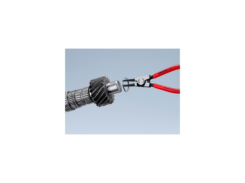 Kleště jsou ideální pro práci s vnějšími pojistnými kroužky na hřídelích. Mají robustní, kovanou konstrukci a speciálně navržené špičky, které zabraňují sklouznutí, což zajišťuje stabilitu a bezpečnost při práci. Kleště jsou černě atramentované, s leštěnou hlavou a rukojeťmi potaženými plastem pro pohodlné uchopení.