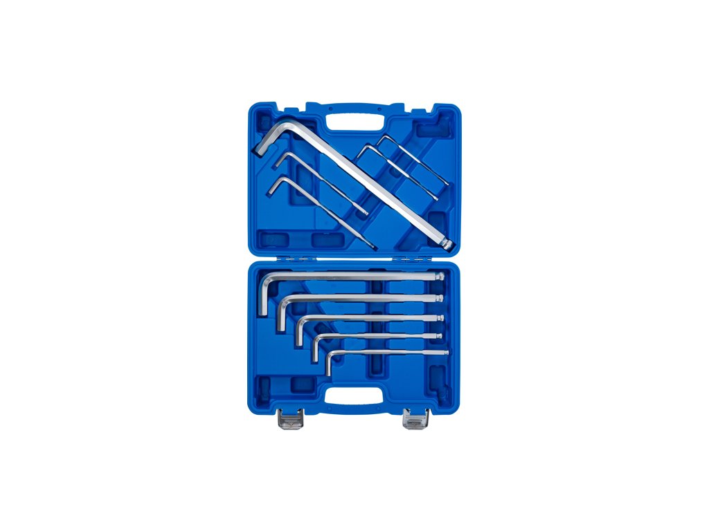 Sada imbusových klíčů pro autoservis, dílnu, výrobní provoz, ale i domácnost. Obsahuje často používané rozměry. Dlouhá strana je zakončena kulovou hlavou, takže lze nářadí používat i mírně vyhnuté, např. při horším přístupu.
